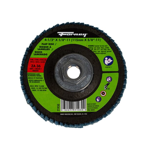 71930 - Forney Flap Disc, Type 29, 4-1/2" x 5/8"-11, ZA36