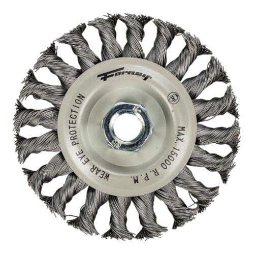 72760 - Forney Wire Wheel Knotted, 4" x .020" x 5/8"-11 Arbor w/ Stringer Bead
